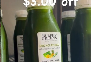 Buy any 6 cold press juices and get an automatic $3 off at Murphy Greens Family Juicery located at 1427 Kingston Road, Toronto contact for details (416) 410-1113.