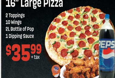 Get a 16" Large Pizza with 2 toppings, 10 wings, 2L bottle of Pop and 1 dipping sauce for Only $35.99 Plus Tax, At Ital Vera Pizza, 270 Chancellor Drive, Vaughan, ON, L4L 7M1, CA Call 905-856-4140