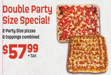 Get A Double Party Size Pizza 6 Regular Toppings combined, For Only $57.99 Plus Tax 7 days A Week Add $3.39 For Delivery At Ital Vera Pizza, 270 Chancellor Drive, Vaughan, ON, L4L 7M1, CA Call To Order 905-856-4140