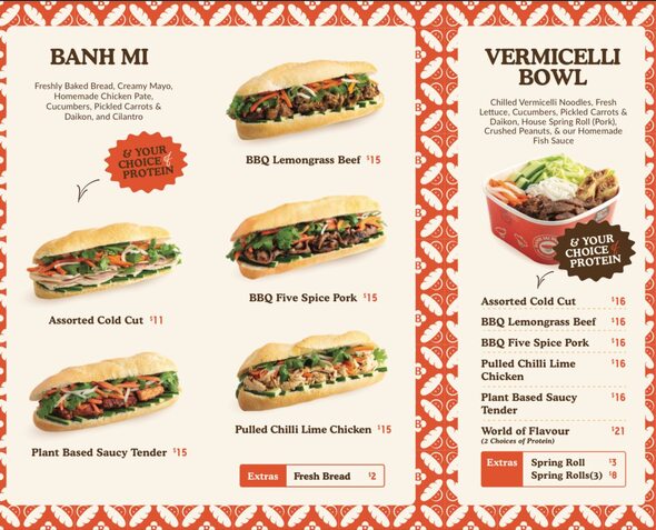 Our cuisine pays homage to Vietnam’s iconic flavours—bright herbs, savoury marinades, zesty pickles—while adding our own modern touches to bring you something truly unique. Whether you’re grabbing a quick lunch, enjoying dinner with friends, or craving a taste of Vietnam right in your neighbourhood, we’re here to serve fresh, bold, and memorable food every day.