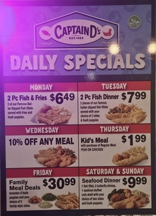 Your local destination for delicious, freshly prepared seafood and comfort food favorites. Known for generous portions, great value, and friendly service, Captain Dβs proudly serves the community with quality meals that keep customers coming back. At our Toronto, ON location, we are part of a historic seafood tradition. Captain D's Seafood Restaurant first opened its doors back on August 15, 1969. A lot has changed since then, but our commitment to serving freshly prepared seafood at a great value has been our core mission from the beginning. Known originally as Mr. D's Seafood and Hamburgers, Captain D's was opened in Donelson, Tennessee. From the very start, we set out to provide quality seafood at reasonable prices, a concept that was revolutionary at the time.