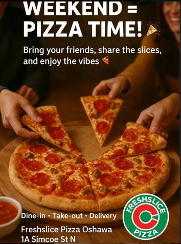 Looking for the best pizza in Oshawa? Visit Freshslice Pizza on Simcoe Street North, right in the heart of downtown! We’re proud to serve up hot, fresh, and delicious pizza at unbeatable value. Whether you're craving a classic pepperoni slice, a gourmet veggie pie, or our famous multigrain crust, Freshslice has something for everyone. We offer fast counter service, affordable combos, walk-in specials, and delivery or pickup through major food apps. Our menu is made with quality ingredients and a commitment to freshness that sets us apart from other pizza places in Oshawa. Order online, call ahead, or just drop in — your next favourite slice is waiting at Freshslice Oshawa!