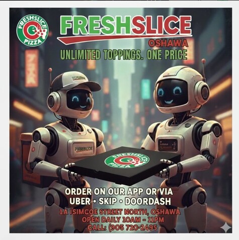 Had an amazing experience at Freshslice Oshawa yesterday. Delicious pizza, friendly staff and probably the most affordable pizza in the area! Thank you Freshslice!