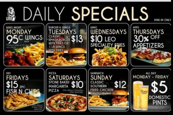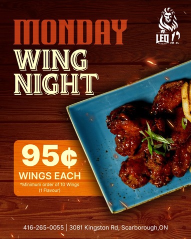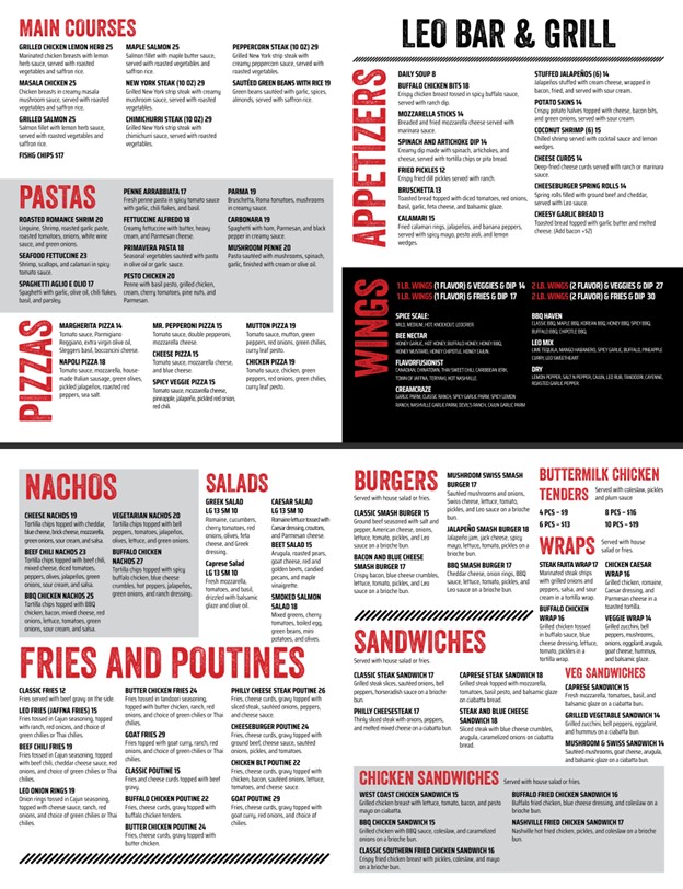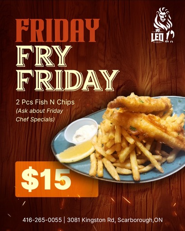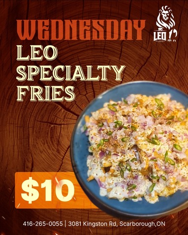 Nestled in the heart of Cliffside Scarborough, Leo Bar and Grill is the perfect spot to unwind with friends and family. This cozy yet vibrant local gem offers a warm, welcoming atmosphere where everyone feels right at home. Known for its classic bar fare, Leo serves up a delicious variety of comfort foods—from crispy wings and hearty burgers to mouth-watering fries and fresh salads. Whether you're here to catch the game or simply relax with a drink, you'll find plenty of entertainment with multiple TVs scattered throughout the space. The bar’s extensive drink menu boasts everything from ice-cold beers to expertly crafted cocktails, perfect for sipping while enjoying the laid-back vibe. We look forward to hosting you soon!
